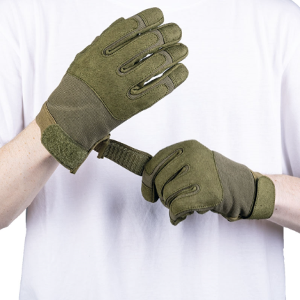 Šie Mil-Tec ražoti cimdi, kas paredzēti ikdienas valkašanai armijā u.c. aizsardzības struktūrās. Cimdu materiāls ir elastīgs un tie ērti ieguļ plaukstā. Plaukstas virspuses daļā ir dubultas makslīgās zamšādas uzšuves, lai pasargātu no viegliem skrāpējumiem. Kā arī visa plaukstas iekšpuse ir izgatavota no sintētiskās zamšādas. nodrošinot gan aizsardzību, gan pretslīdi, īpaši, turot rokās ieroci. Katra pirksta sānos ir mazi ventilacijas caurumiņi, lai nodrošinātu komfortablāku sajūtu, neļaujot tiem pārāk uzkarst.